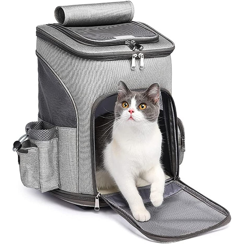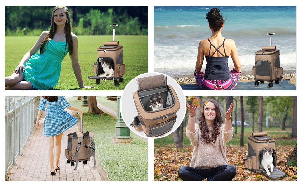 Padded Shoulder Strap & Removable Mat: Two side for all seasons. At the bottom it comes with a comfortable soft pad for your pet to rest, which is removable and washable for easy cleanig. One side is cooling farbic for summer, one side is warm farbic for winter.Both the back and adjustable shoulder straps of the dog backpack carrier are equipped with extra thick padding, which help to relieve the burden of your shoulder and back, making it more comfortable to wear.