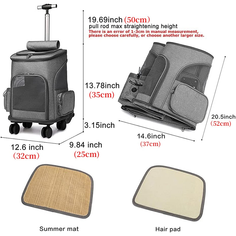 Size: 12.6" (L) x 10.2" (W) x 16.5" (H)(Without wheels),and the pull rod straightened high 38.2".